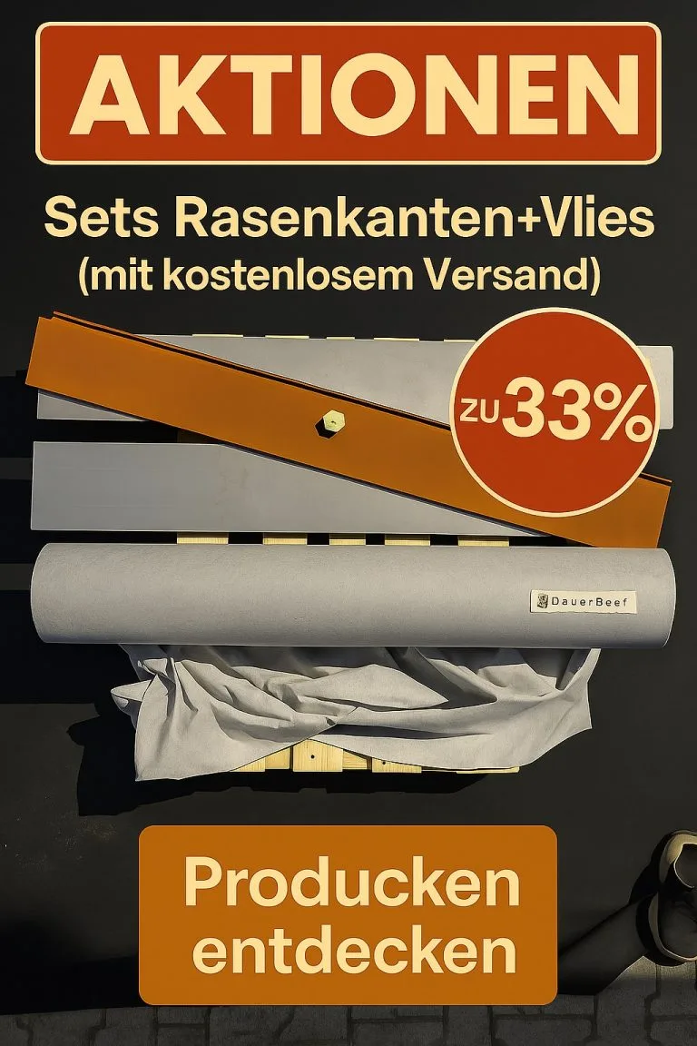 Bei DauerBeet® setzen wir auf hochwertige, langlebige Materialien und fertigen unsere Rasenkanten und Unkrautvliese direkt im eigenen Haus. Vom ersten Verlegen an werden Sie die stabile, formtreue Verarbeitung zu schätzen wissen – für eine saubere, präzise Gartenkante, Jahr für Jahr. Und das bei minimalem Pflegeaufwand.