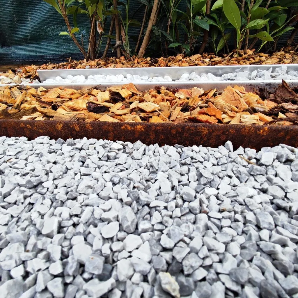 Kontraste schaffen: Verwenden Sie dunkle Cortenstahl-Kanten neben hellen Kiesflächen oder weißen Kiesbeeten – dadurch entsteht ein moderner Kontrast, der besonders gut zu alpinen Pflanzen oder Kiesgärten passt.