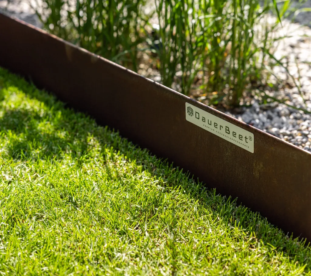 Cortenstahl bildet durch Witterungseinflüsse eine schützende Rostpatina, die das Material langfristig vor weiterem Korrosionsbefall bewahrt. Aufgrund seines markanten Rost-Looks ist Corten vor allem in zeitgemäßen, industriell angehauchten Gartenprojekten beliebt. Cortenstahl ist sehr witterungsbeständig und benötigt keinen zusätzlichen Anstrich. Allerdings ist der Anschaffungspreis etwas höher, und während der Patinierung können angrenzende Steinflächen oder Kiesbeete eine kurze Zeit lang Rostpartikel abbekommen.