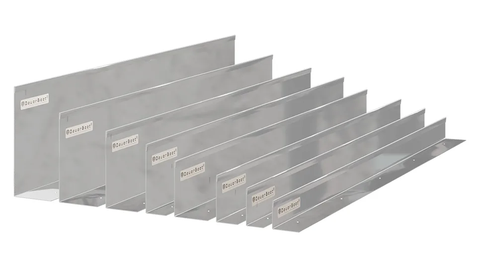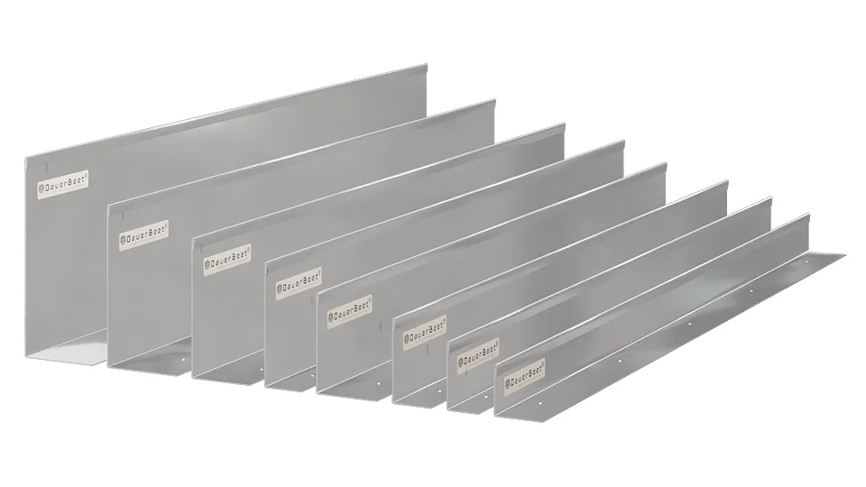 - Maße: Länge 150 cm, Höhe 6, 8, 12, 15 und 20 cm. Materialstärke: 1,0 mm.